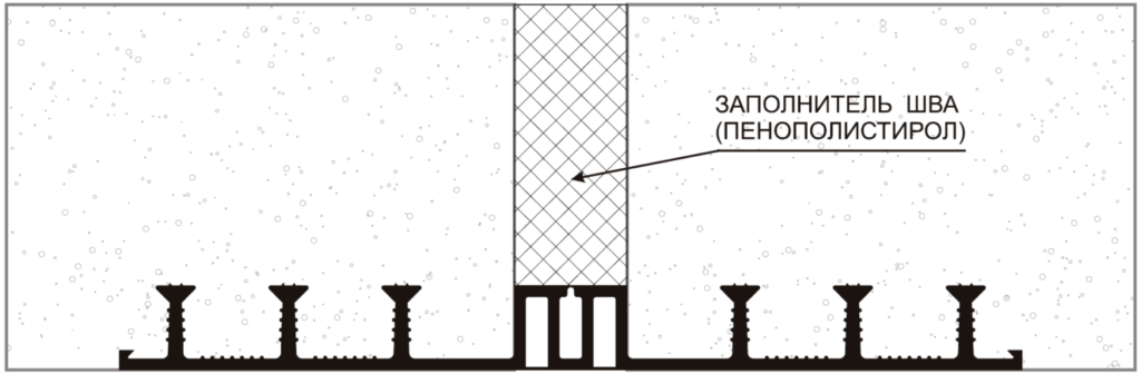 Устанавливается по внешнему контуру деформационного шва, когда нет выпирающих горизонтальных частей элементов конструкций подземной части зданий и сооружений, например консольный вылет плиты фундамента.